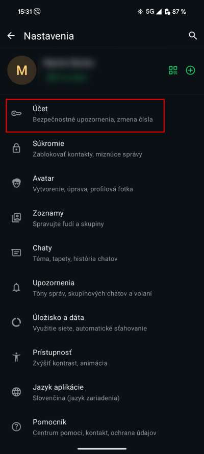 - Poté otevři Nastavení aplikace a klikni na možnost Účet.