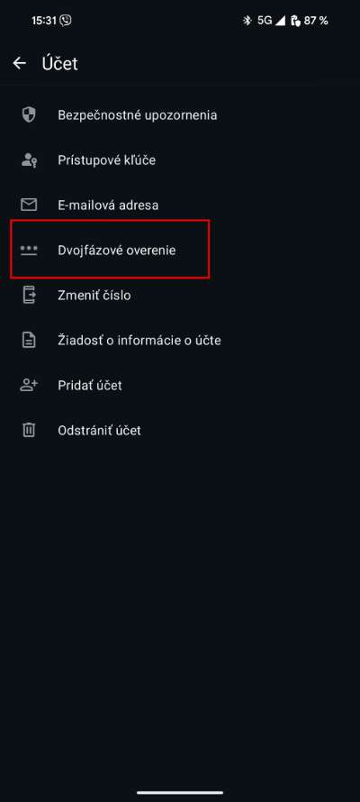 - Následně vyber možnost Dvoustupňové ověření a aktivuj ho.