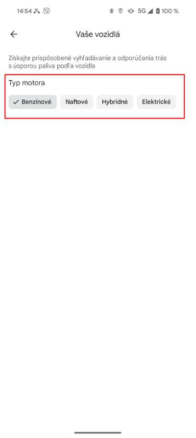 Nejdříve je potřeba nastavit si v aplikaci typ vozu. Otevři Google Mapy, klikni na svůj profilový obrázek a přejdi do nastavení. V sekci Tvůj vůz si vyber, jestli jezdíš na benzín, naftu, hybrid nebo elektromobil. Tento krok je důležitý, protože aplikace pak přizpůsobí výpočty tvé spotřebě.