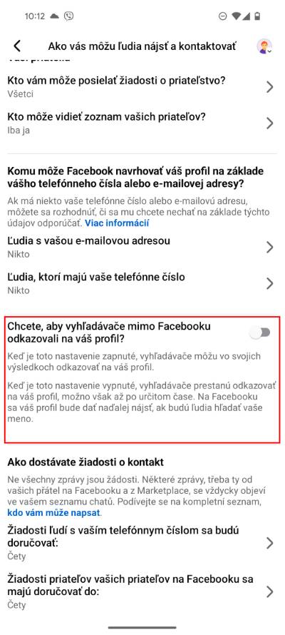 - Teď deaktivuj možnost Chcete, aby vyhledávače mimo Facebook odkazovaly na váš profil?