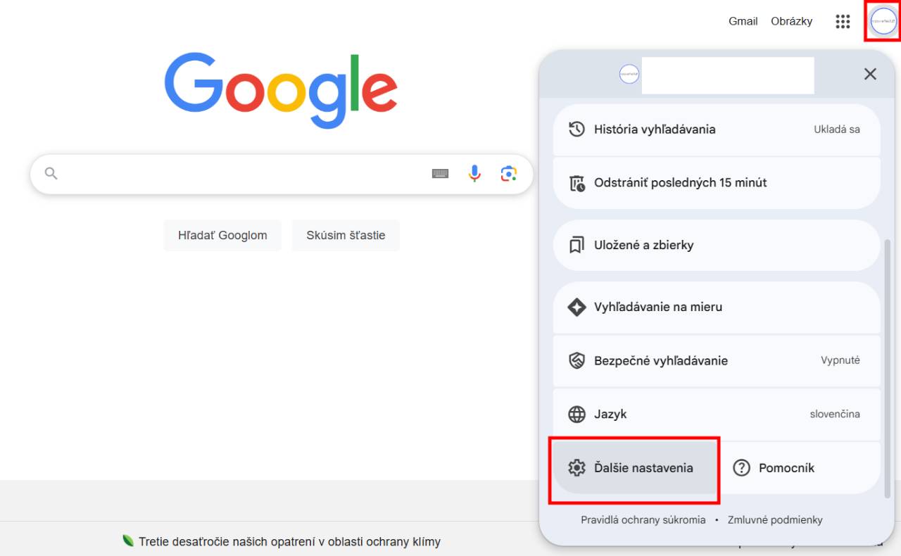 - Otevři si v prvním kroku Google a klikni na svůj profilový obrázek.