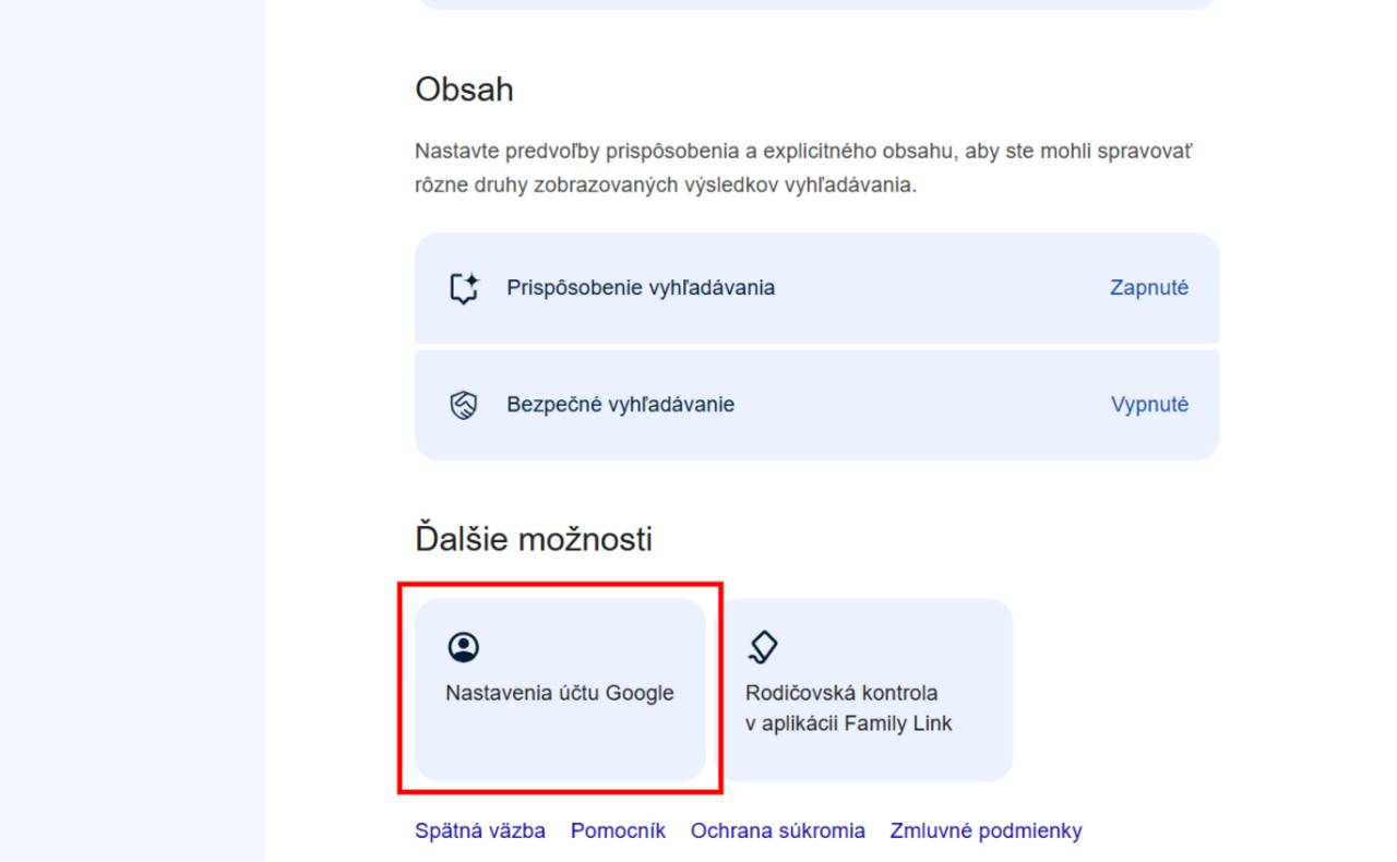 - V dolní části obrazovky klikni na Nastavení účtu Google.