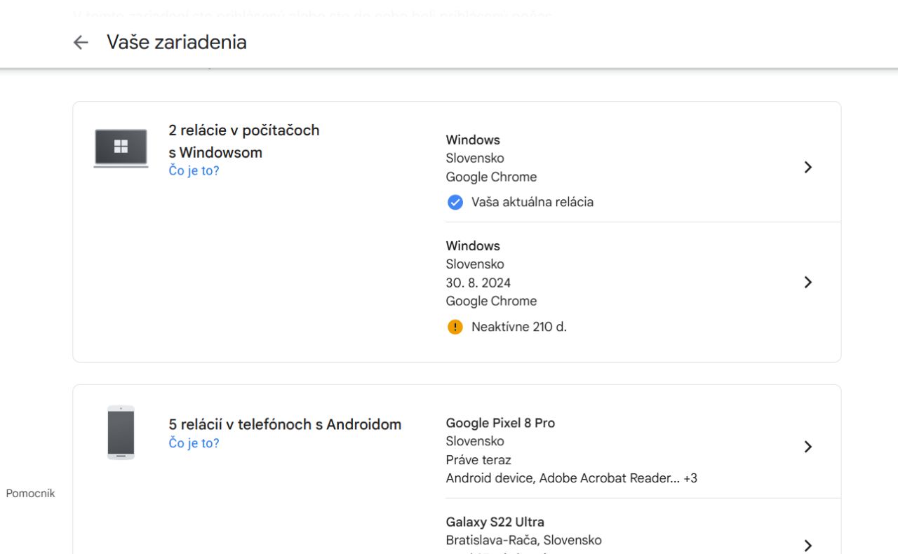 - Následně uvidíš všechna zařízení, která jsou přihlášena k tvému účtu včetně toho, kdy se naposledy připojila.