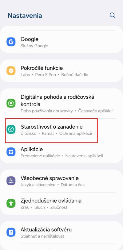 - Nyní roluj nabídku k možnosti Péče o zařízení.