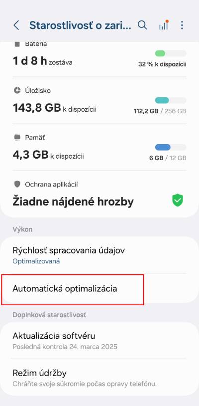 - V dalším kroku otevři možnost Automatická optimalizace.