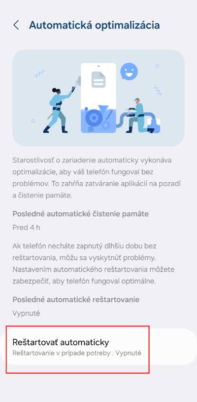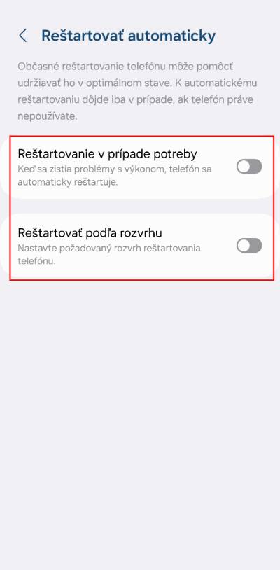 - Poté zvol, kdy se má mobil restartovat automaticky. Například když zaznamená problémy, nebo v konkrétní čas.