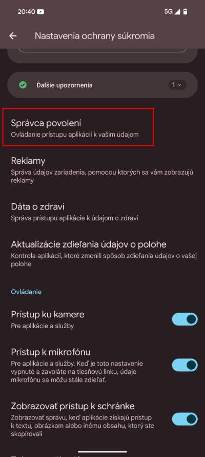 Alternativně se k těmto nastavením dostaneš přes Kartu zabezpečení a ochrany soukromí. Poté klikni na Nastavení ochrany soukromí a následně na Správce oprávnění. V rámci těchto nastavení si otevři sekce SMS a Kontakty. Pečlivě zkontroluj, které aplikace mají obě tato oprávnění.