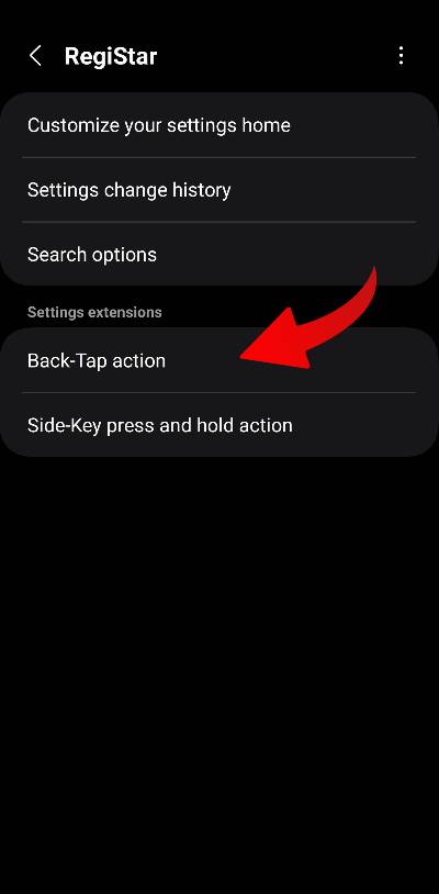 - Spusť RegiStar a najdi možnost Back-Tap action.