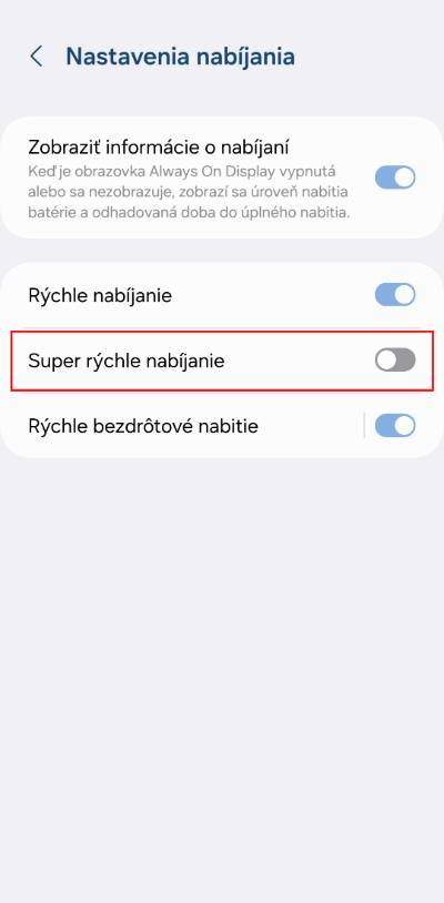 - Aktivuj funkci Super rychlé nabíjení.