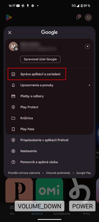 - V dalším kroku klikni na svůj profilový obrázek a pak na možnost Správa aplikací a zařízení.