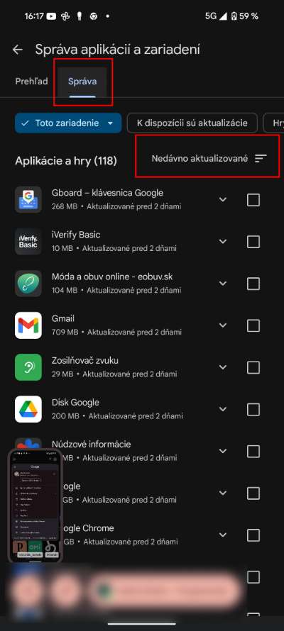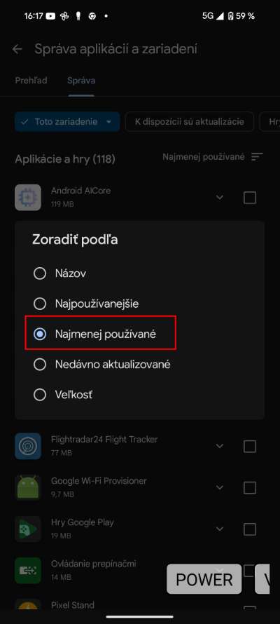- Potom ti již budou aplikace seřazeny od nejméně používaných po nejvíce používané.