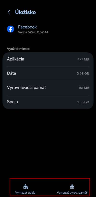 Vymazání cache odstraní jen dočasné soubory. Vymazání dat aplikace ji úplně resetuje.