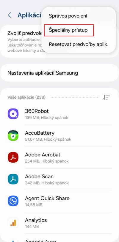 - Nevyber možnost Správce povolení, ale klikni na Speciální přístup.