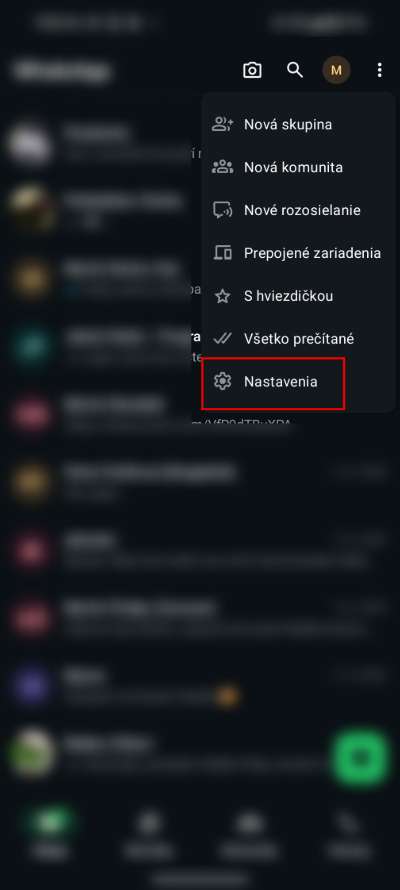 - Otevři si WhatsApp a klikni na tři svislé tečky.